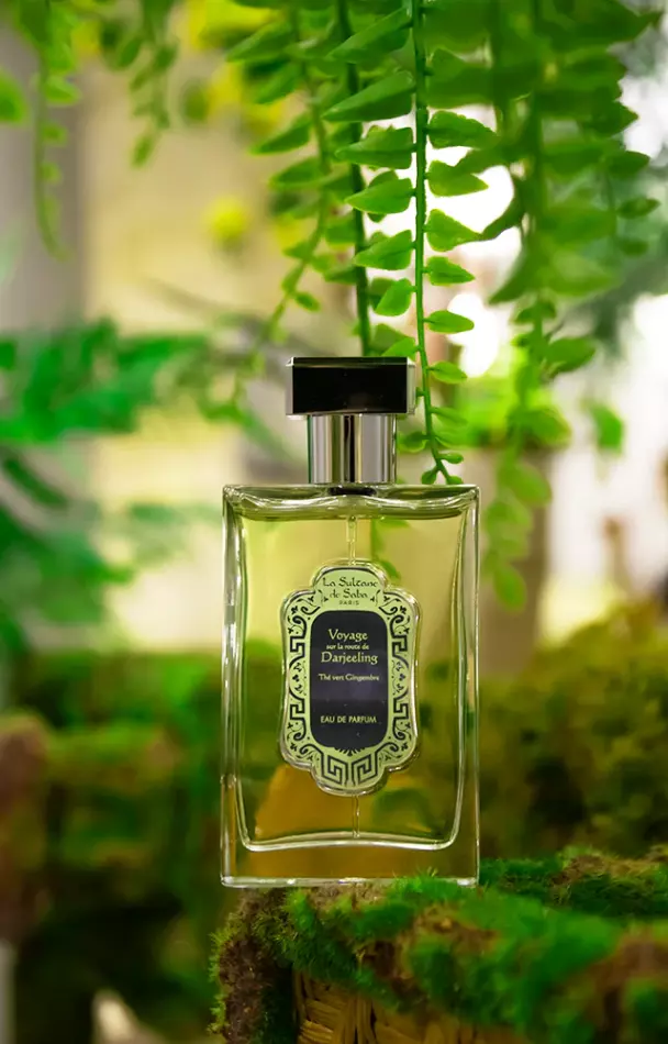 Les brumes du matin se lèvent sur les montagnes de Darjeeling. Imaginez-vous au cœur des plantations de thé, une brise fraîche caressant votre peau. Un accord parfait de gingembre épicé et de thé vert délicat vous enveloppe d’une aura sensuelle et addictive. Laissez-vous séduire par la fragrance mystérieuse et raffinée de notre parfum (100 ml) thé vert gingembre.